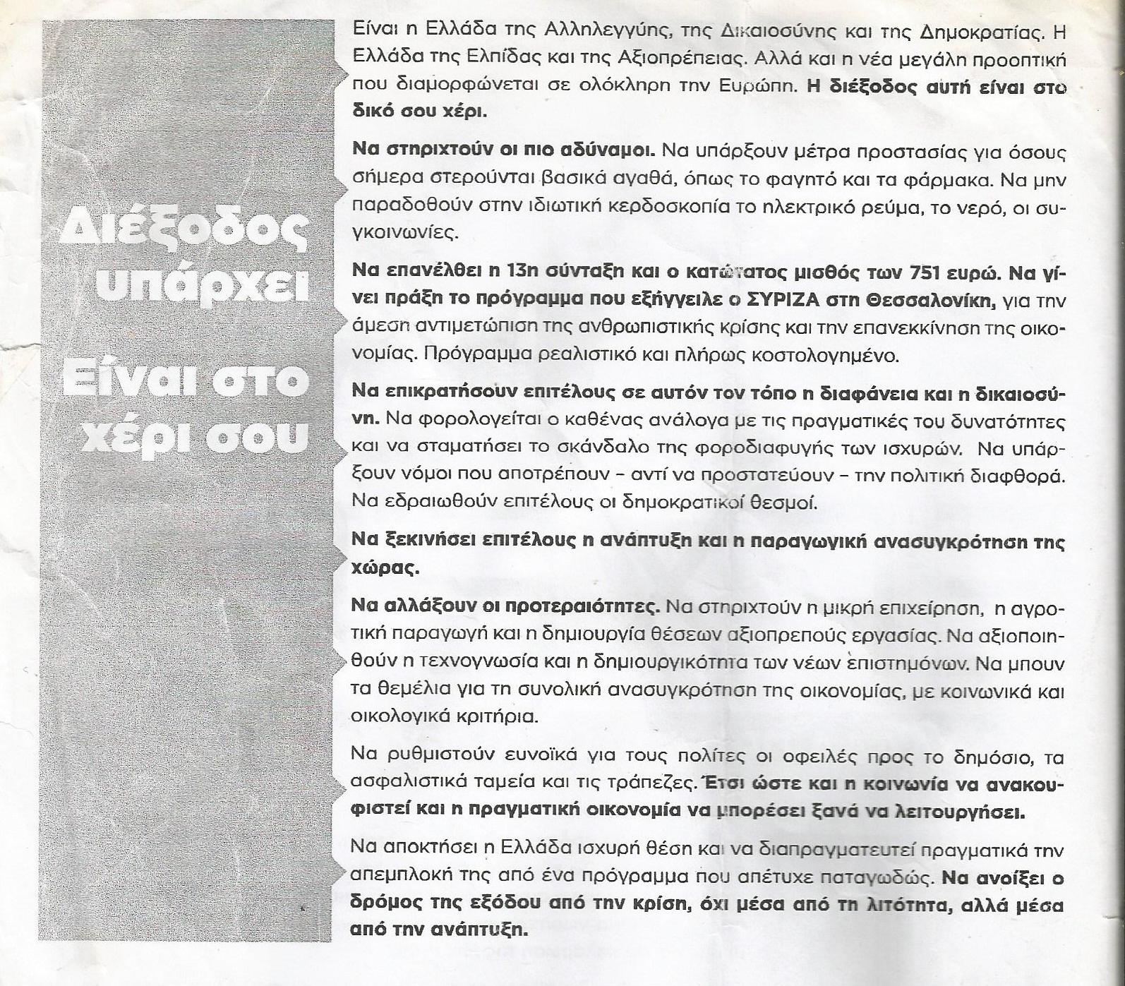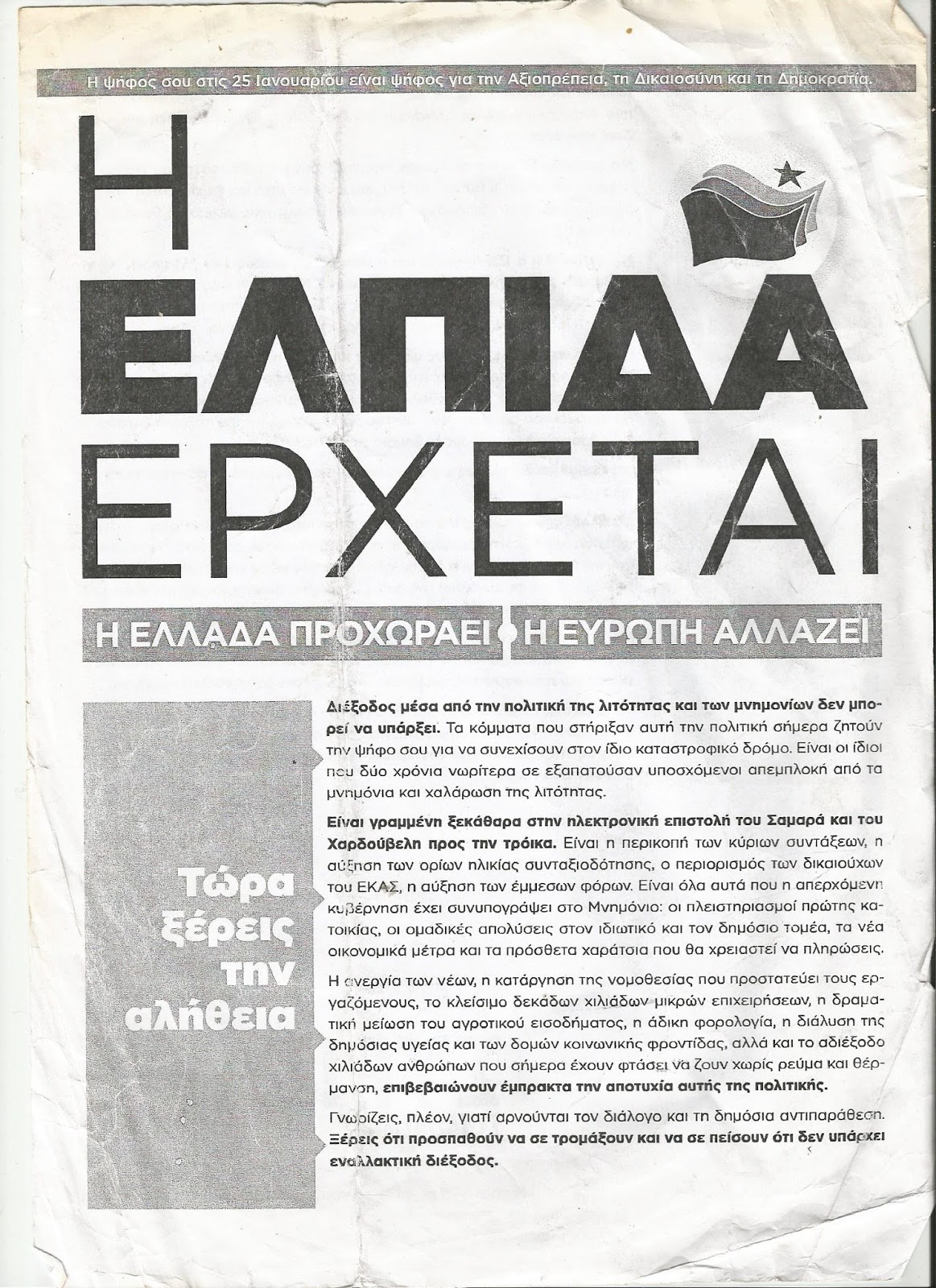 Με Τεράστια Γράμματα , έγραφε το ανάλογο προσπέκτους , πριν από 25 ΙΑΝΝΟΥΑΡΊΟΥ 2015 , στις πρώτες εκλογές που βγήκε :